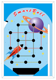 ボールを右の穴から入れ、右下のハンドルバーではじきます。